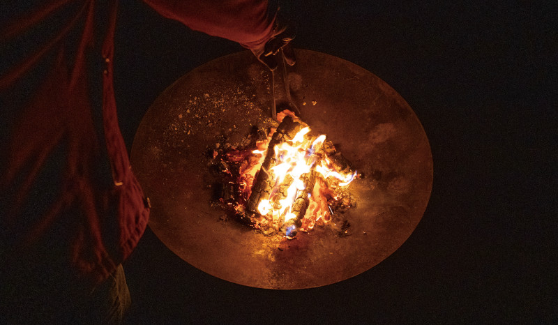 スイス生まれのウッドグリルシステム。直径80センチで4~5人向けの迫力サイズ。ボウルの中心で燃える火が厚い鉄板のグリルに熱を与え、本格的な調理が可能です。